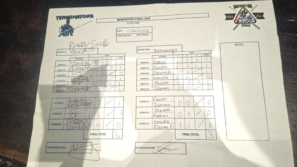 17 February 2026 7:00 pm Bergrivier Sosiale Pool Liga 2026 Summer