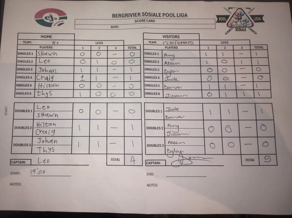 24 February 2026 7:00 pm Bergrivier Sosiale Pool Liga 2026 Summer