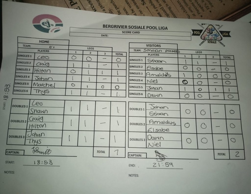 Bergrivier Social Pool league