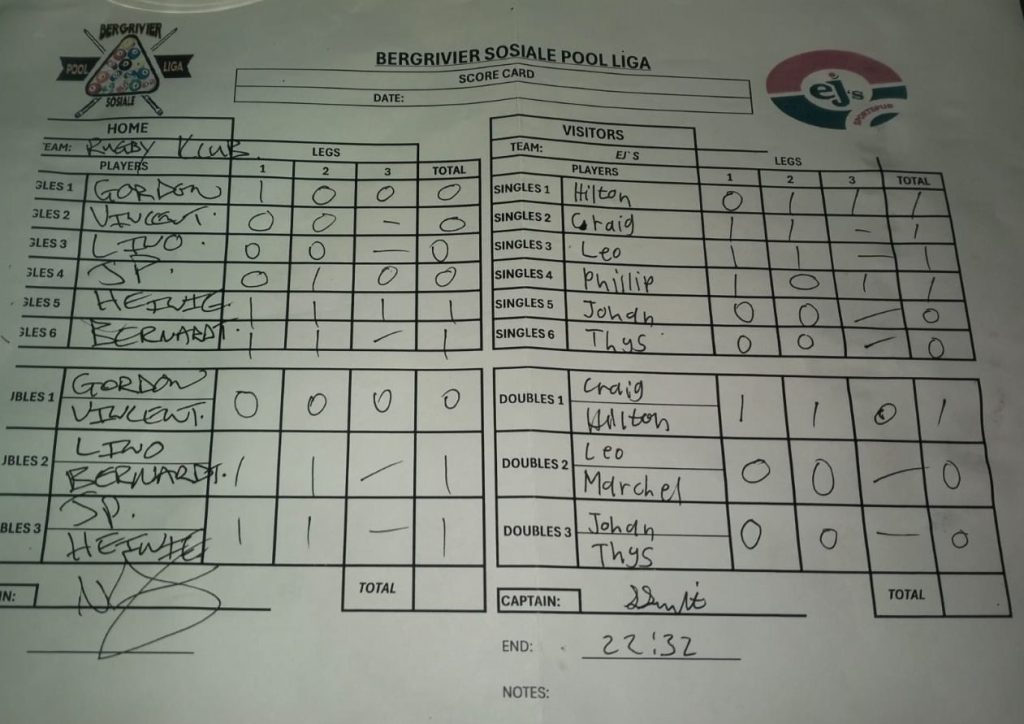 7 April 2026 7:00 pm Bergrivier Sosiale Pool Liga 2026 Summer